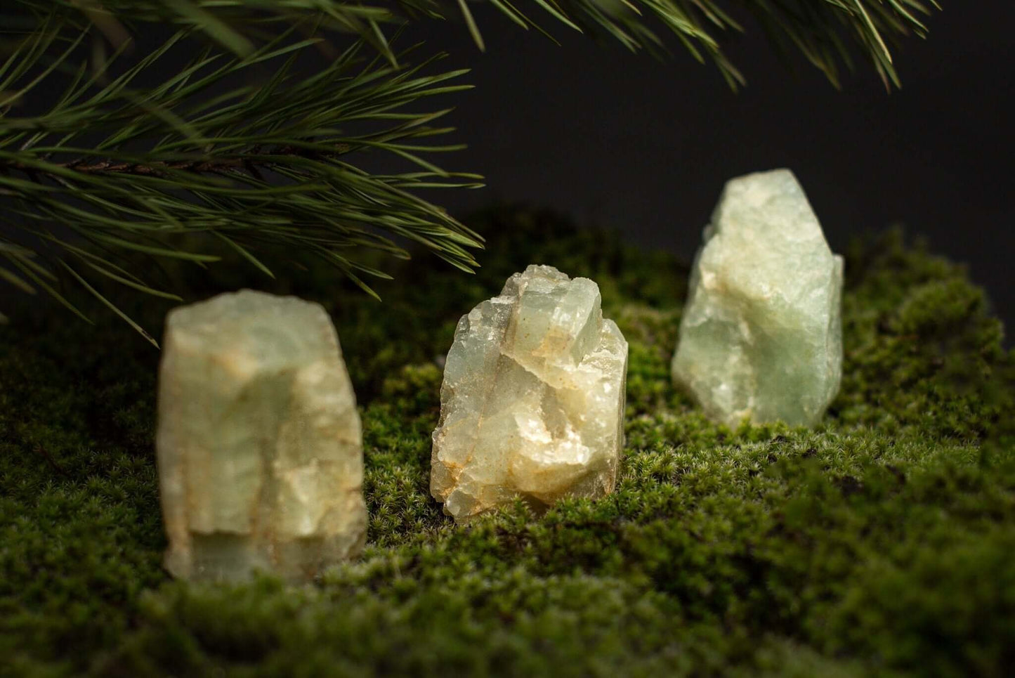 تتراوح ألوان كل بلورة من الأخضر الرغوي إلى الأزرق الجليدي، لتعكس هدوء وعمق مياه المحيط. اختلافات طفيفة في الملمس واللون والتركيب تجعل كل قطعة فريدة من نوعها. - قوية من الناحية الطاقية: