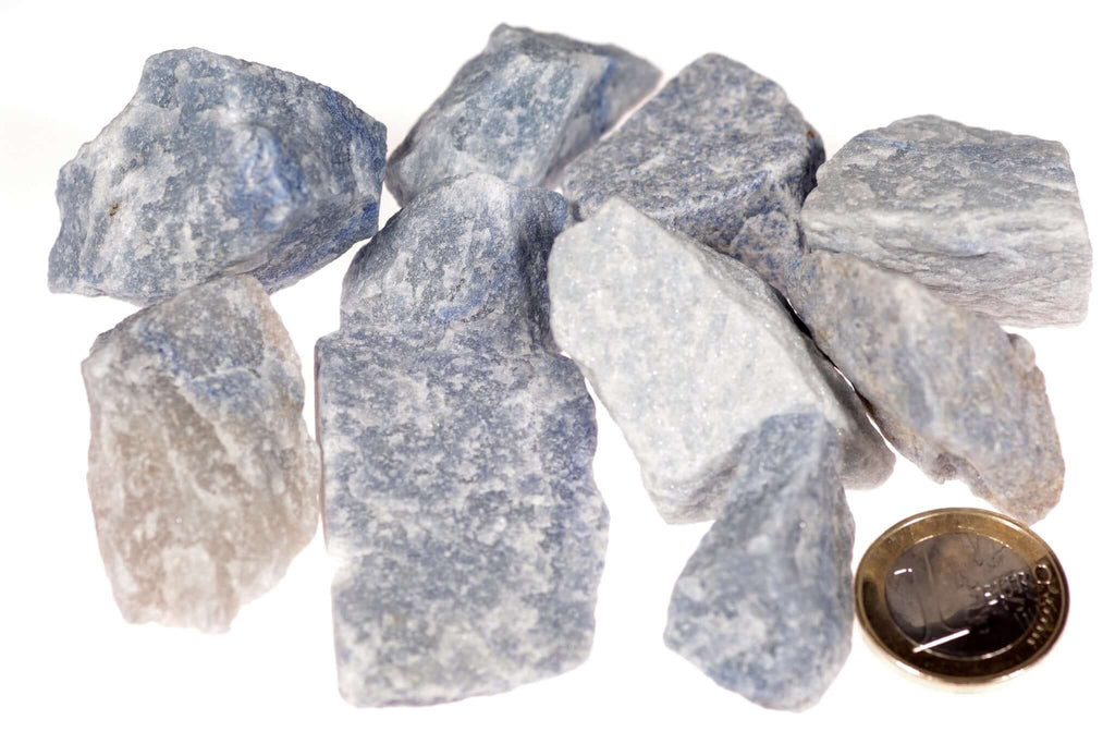 ملحوظة: نظرًا لكونها عبارة عن بلورة طبيعية، فإن كل قطعة تختلف في الحجم والشكل والنغمة، مما يجعل الكوارتز الأزرق الخاص بك فريدًا من نوعه حقًا.