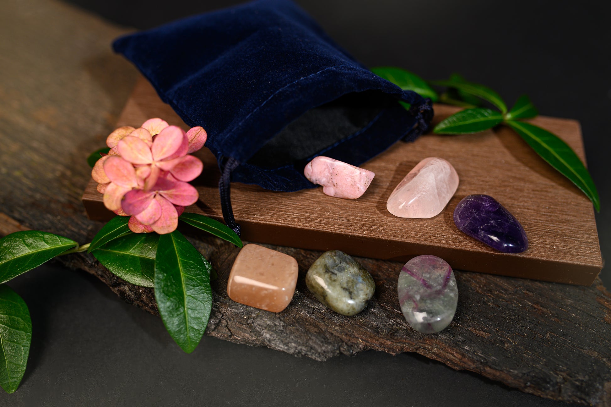 - الحجارة المتضمنة: أوبال وردي، كوارتز وردي، جمشت، حجر القمر، لابرادوريت، فلوريت