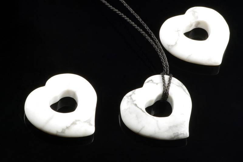 مصنوعة من حجر الهاوليت الطبيعي، تتميز هذه القلادة بقاعدة بيضاء نظيفة أو رمادية ناعمة مزخرفة بشكل رخامي مع عروق رمادية أو سوداء - مما يمنحها مظهرًا جماليًا خالدًا يشبه الرخام.