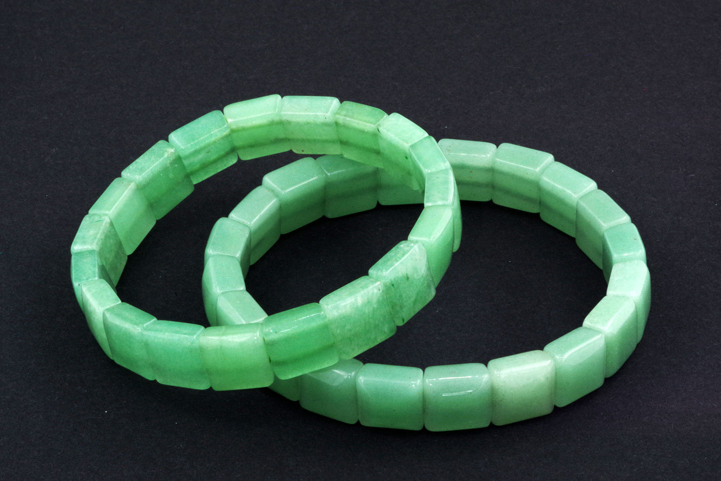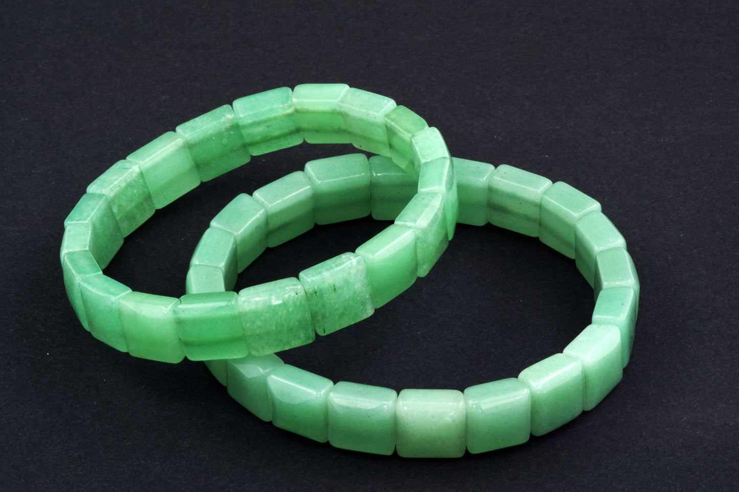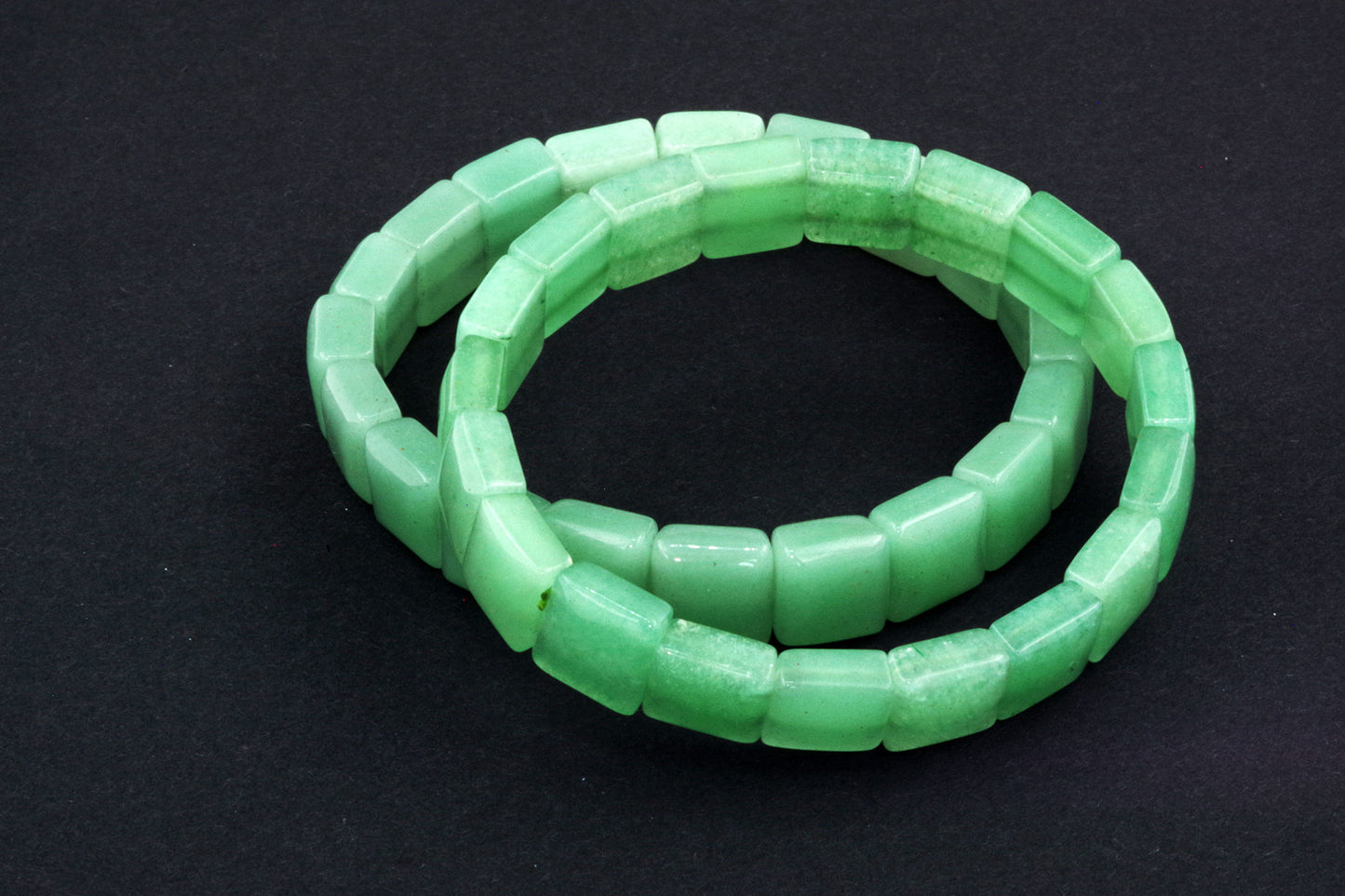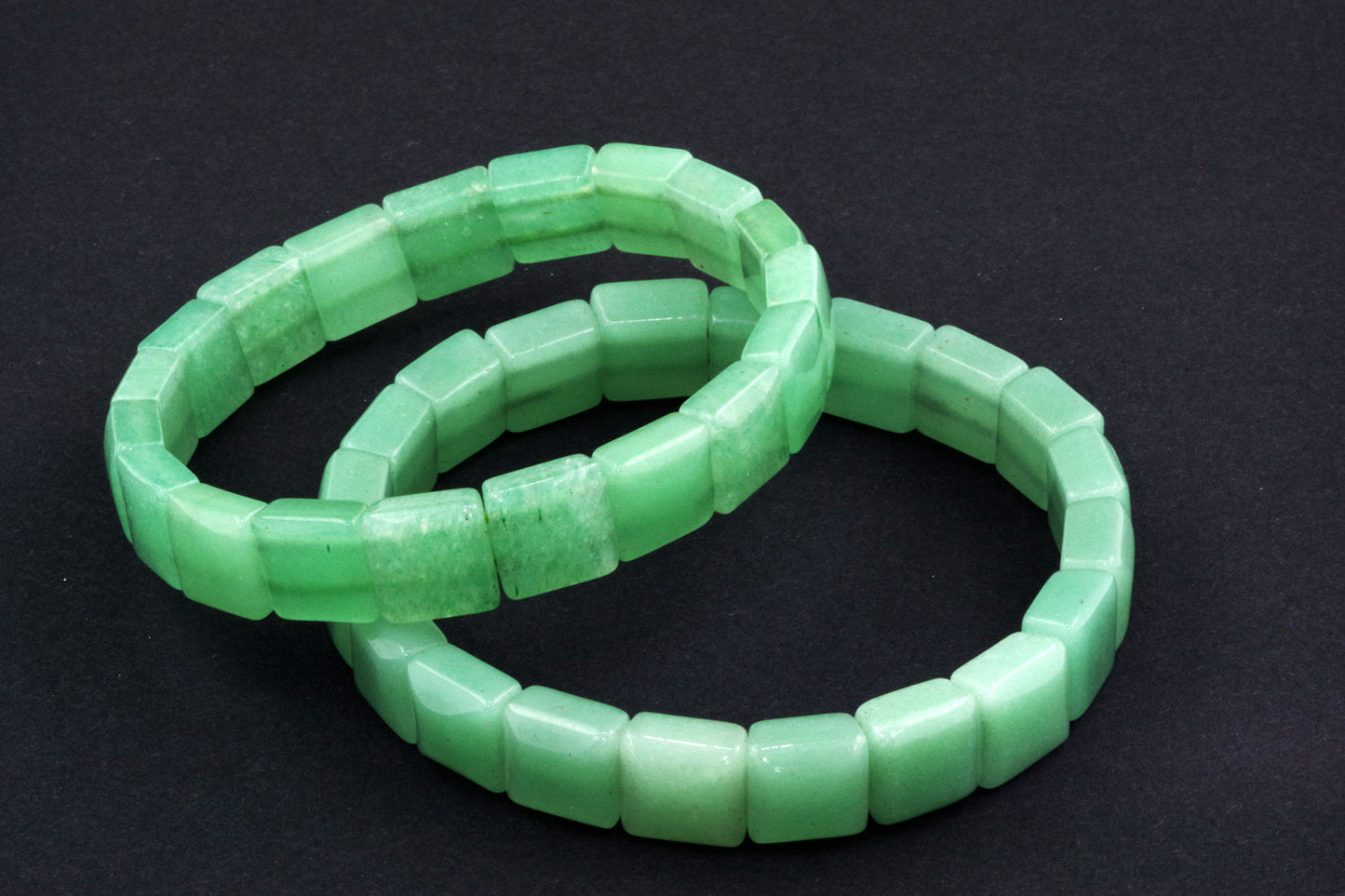 Chaque perle, à la forme précise, met en valeur la riche couleur verte de l'aventurine et ses subtils reflets. Ses bords nets et ses surfaces planes créent une esthétique moderne et épurée, qui se distingue par sa sobriété. - Énergie autonomisante :