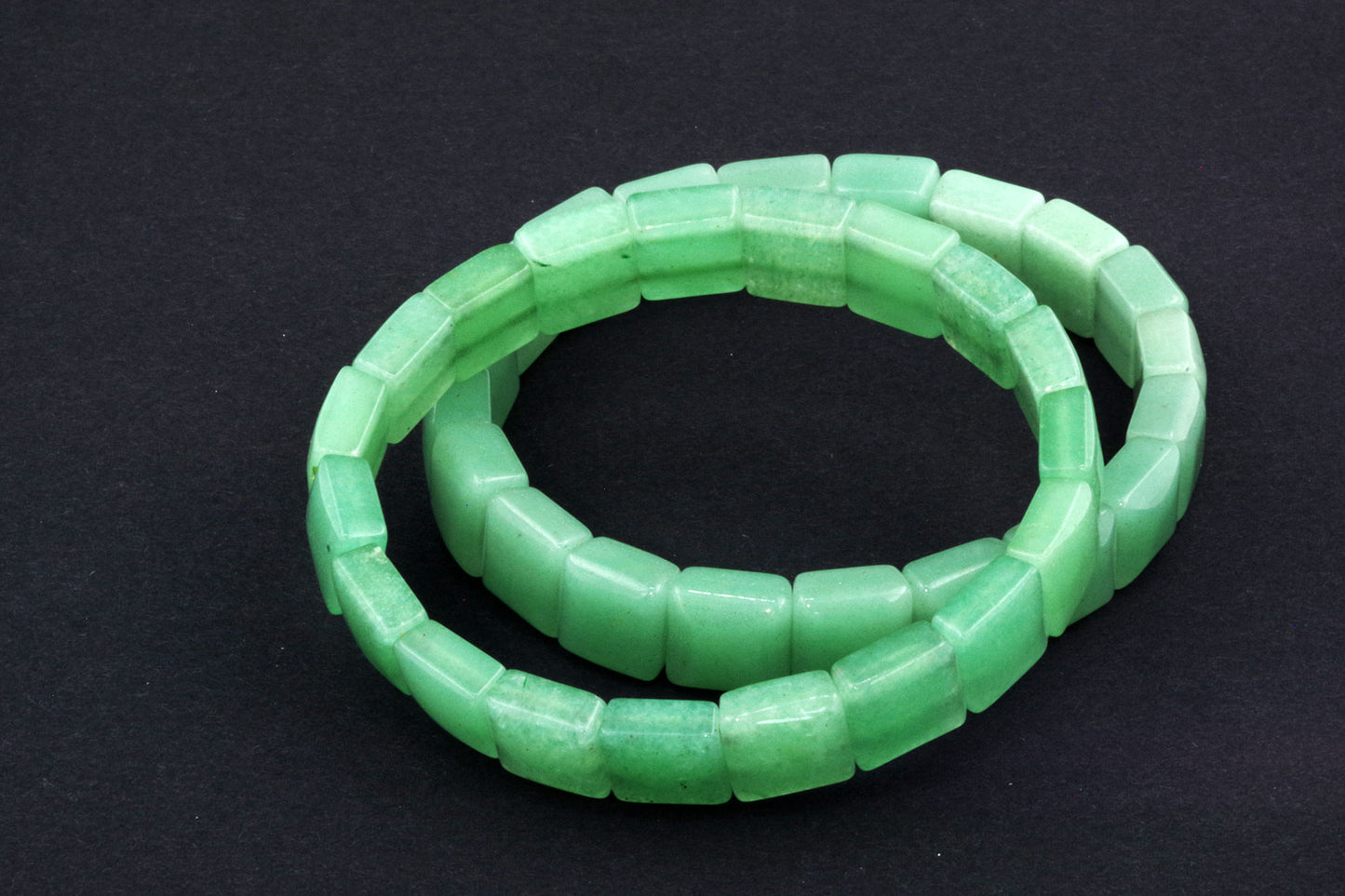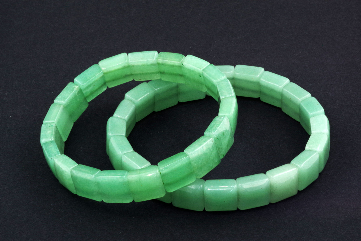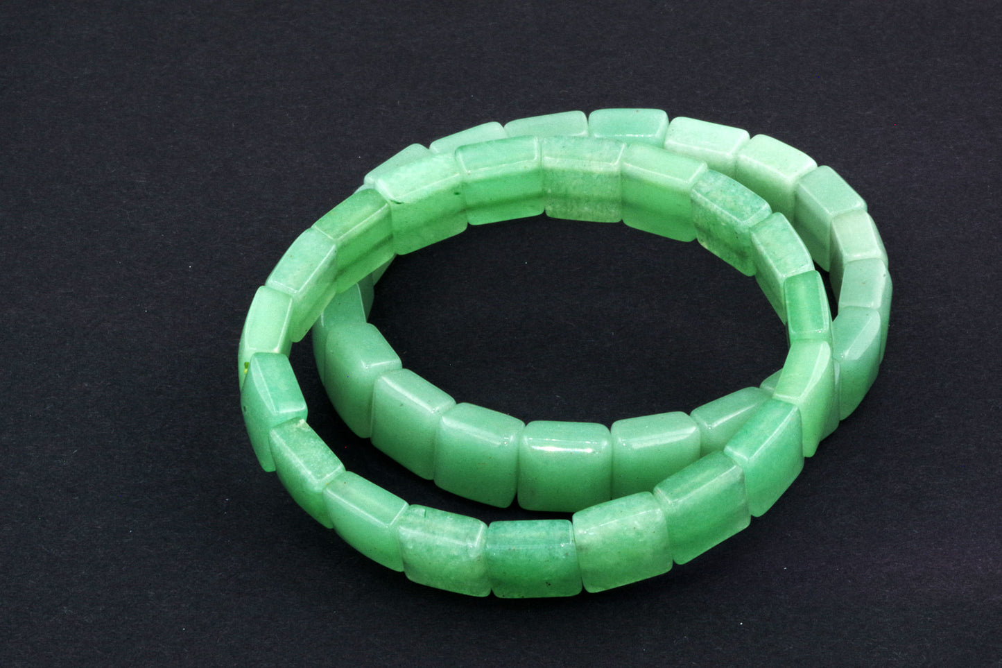 Chaque perle, à la forme précise, met en valeur la riche couleur verte de l'aventurine et ses subtils reflets. Ses bords nets et ses surfaces planes créent une esthétique moderne et épurée, qui se distingue par sa sobriété. - Énergie autonomisante :