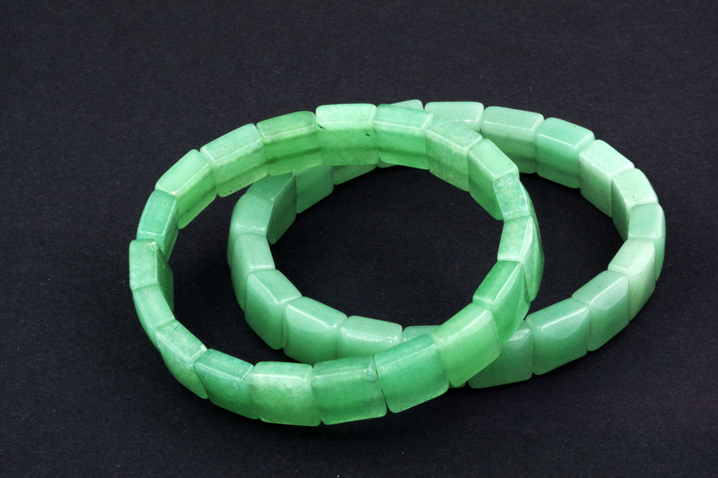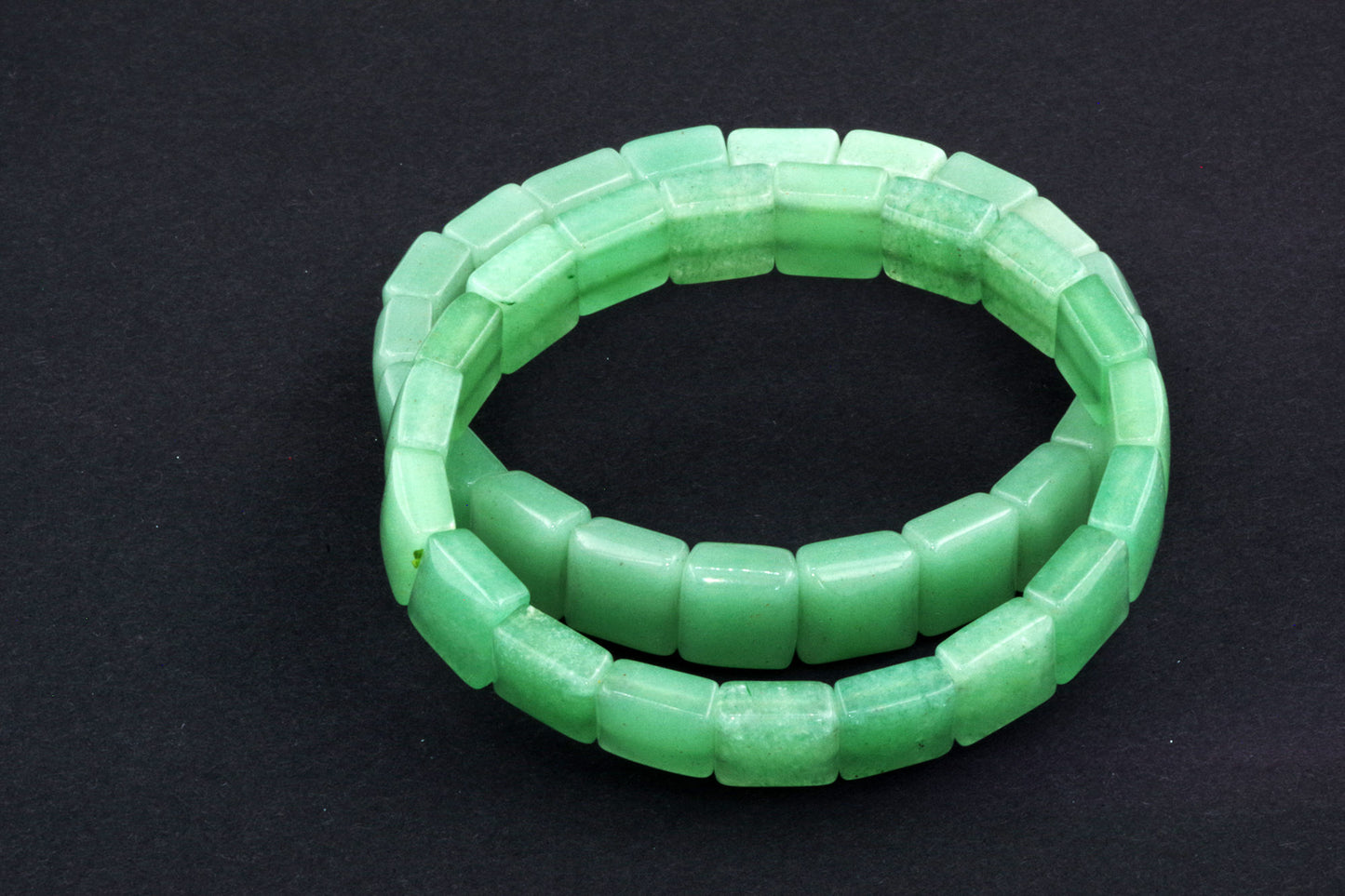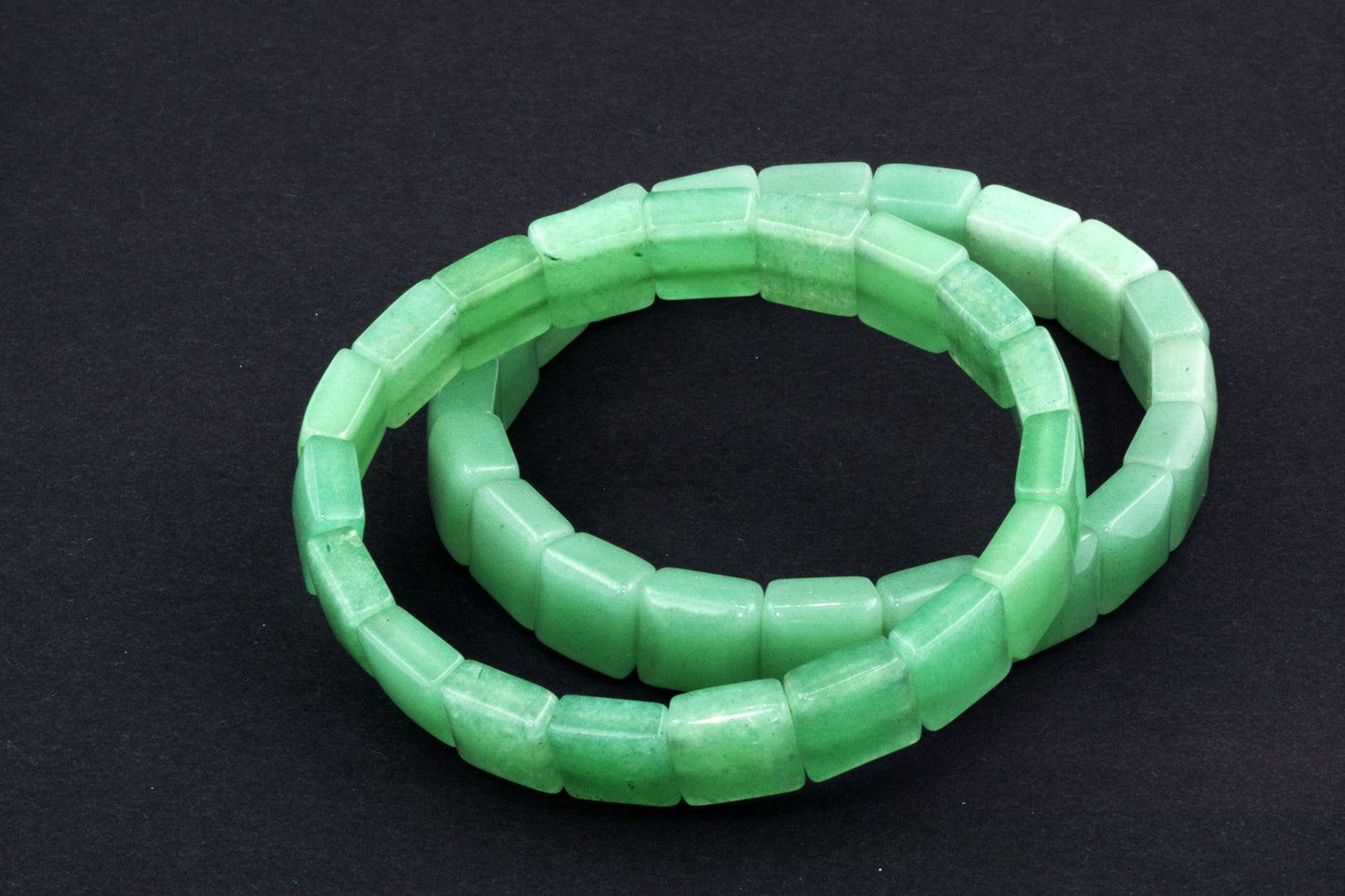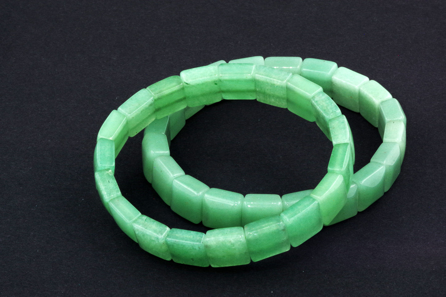 Chaque perle, à la forme précise, met en valeur la riche couleur verte de l'aventurine et ses subtils reflets. Ses bords nets et ses surfaces planes créent une esthétique moderne et épurée, qui se distingue par sa sobriété. - Énergie autonomisante :