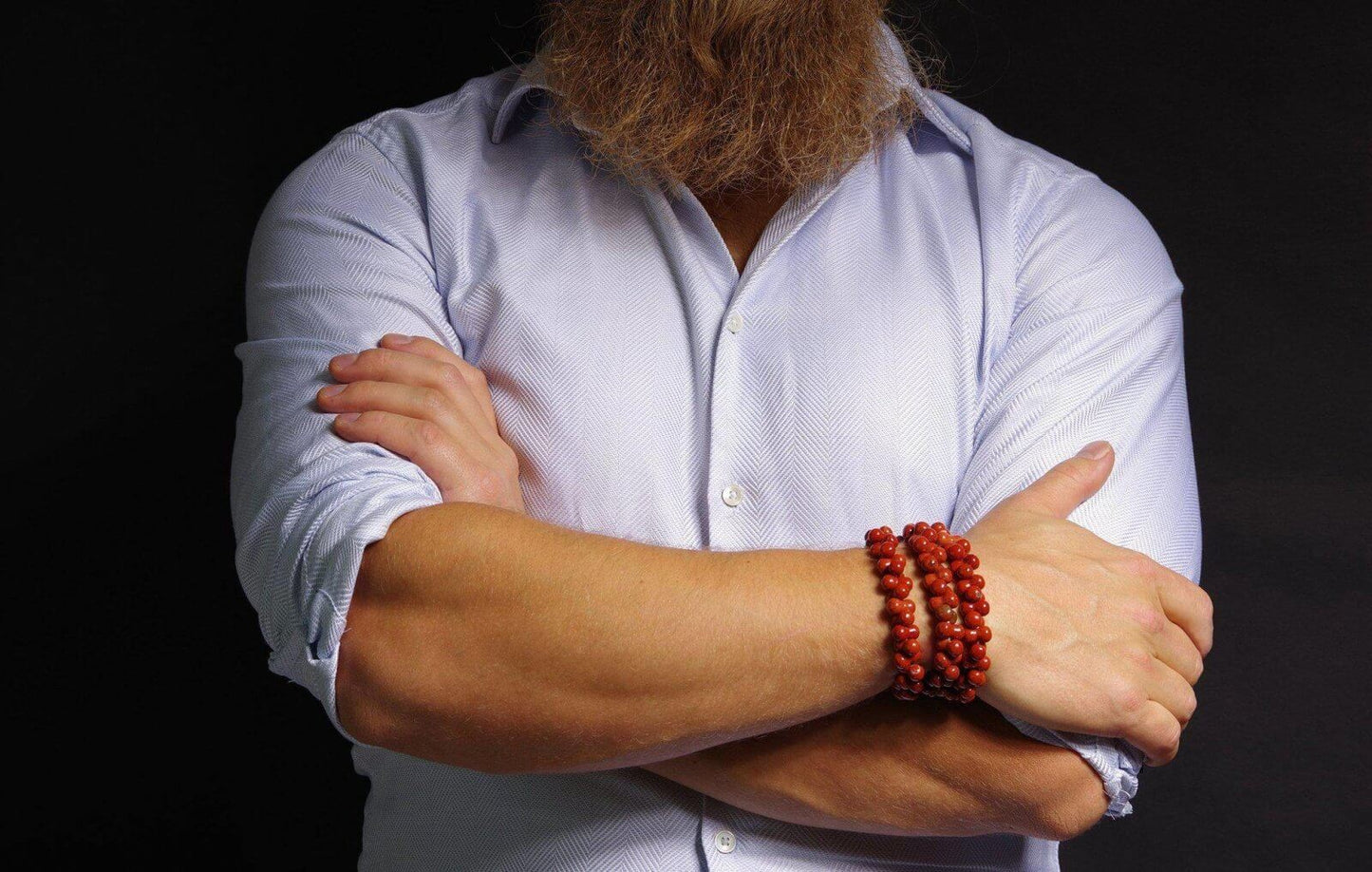 Chaque perle présente une coloration rouge chaude avec des touches naturelles de jaune, de marron ou de bleu, faisant de chaque bracelet une expression unique de la beauté de la Terre.
