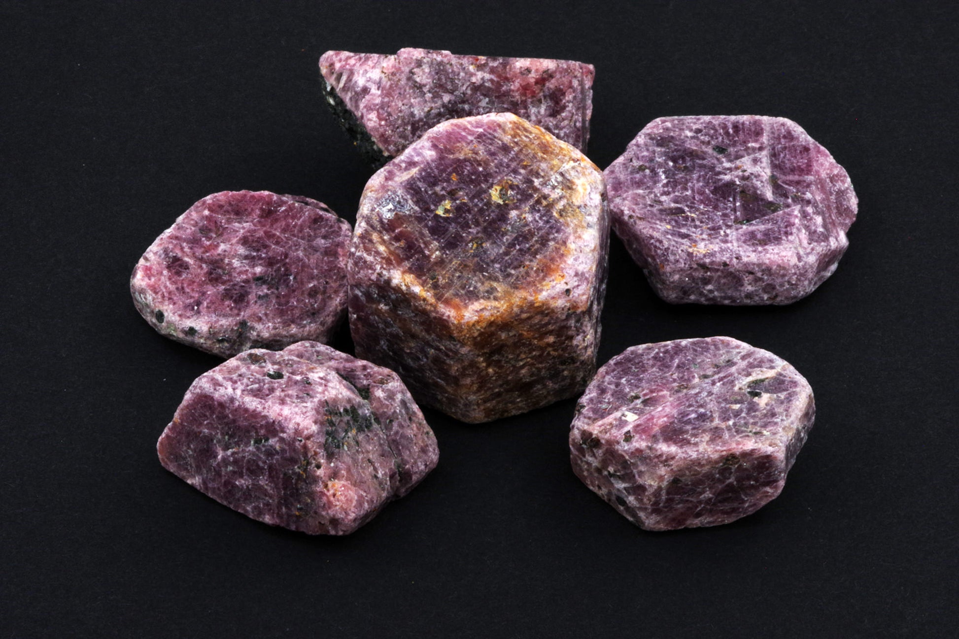 Variété de corindon, le rubis est prisé pour sa dureté exceptionnelle et ses tons rouges intenses. Chaque pierre brute révèle des textures et des teintes allant du pourpre profond au rose rosé, révélant sa splendeur naturelle et brute. - 🌋 Formation unique :