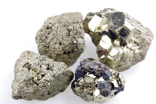 Pyriet, algemeen bekend als "Fool's Gold", schittert met een koperkleurige, metaalachtige glans die ooit goudzoekers op zoek naar echt goud misleidde. Het wordt gevonden in sedimentair, stollings- en metamorf gesteente en vormt vaak opvallende kubische kristallen of glanzende clusters. Achter zijn glinsterende uiterlijk wordt pyriet bewonderd om zijn zelfvertrouwen, optimisme en een vonk van beschermende energie.