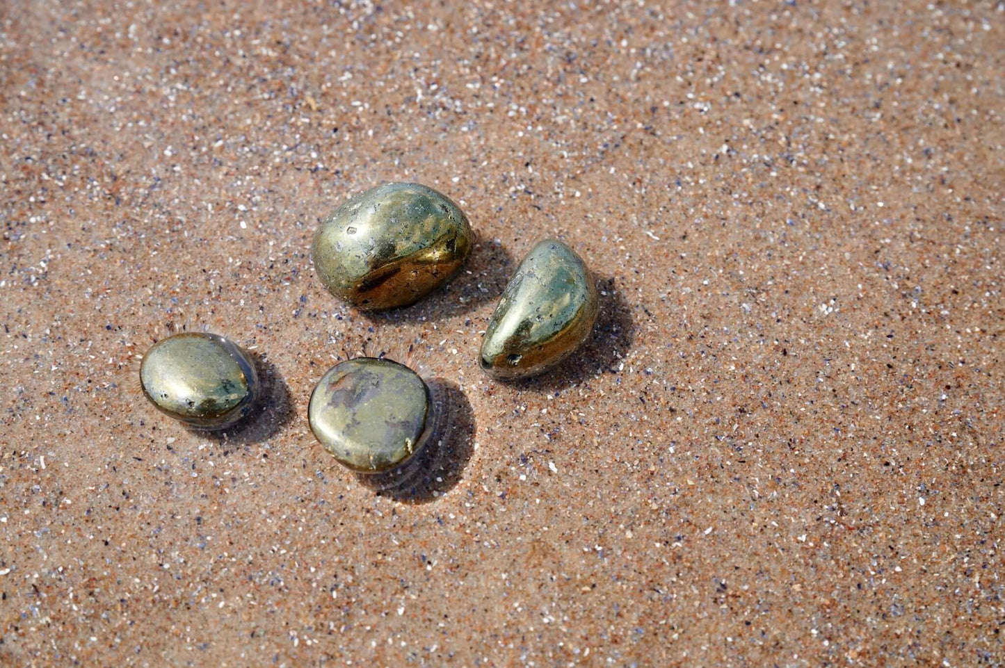 Golden Aura & Iridescent Beauty: Chalcopyrite’s natural shimmer glows with metallic gold tones and peacock-like iridescence, making every piece a vibrant, one-of-a-kind display of color and light.