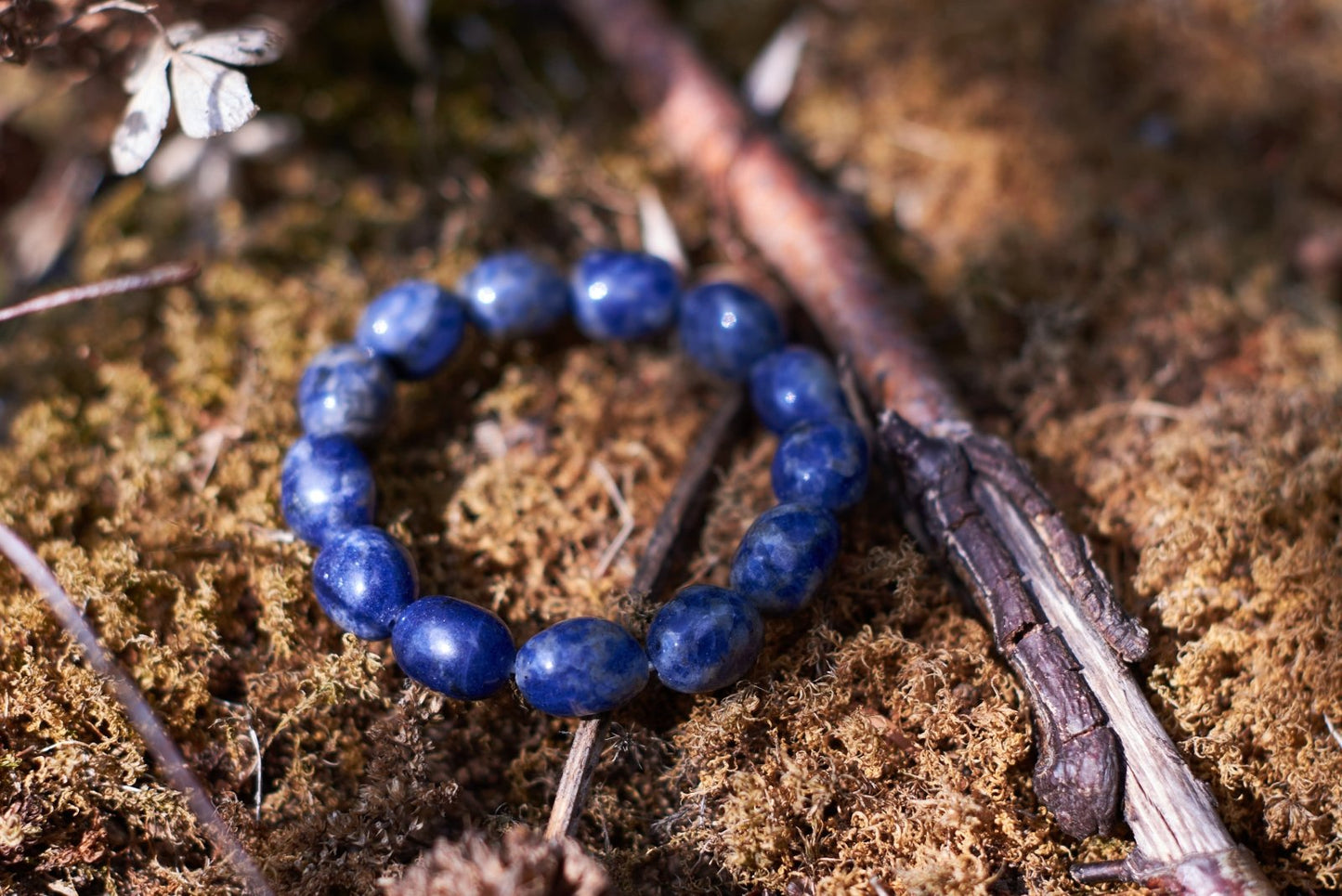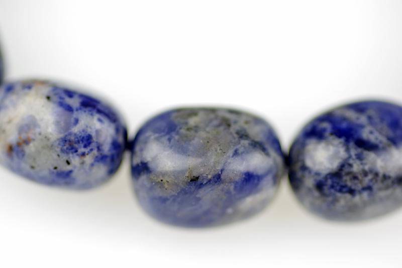 Behold the allure of our Sodalite Gem Bracelet, a masterful fusion of elegant design and deep spiritual resonance. Expertly crafted with high-quality sodalite gems, each bead showcases the stone's signature royal blue hue interlaced with delicate white veining reminiscent of a starlit night sky. The polished facets of each gemstone capture and reflect light, creating a dazzling interplay of brilliance that sets this bracelet apart.